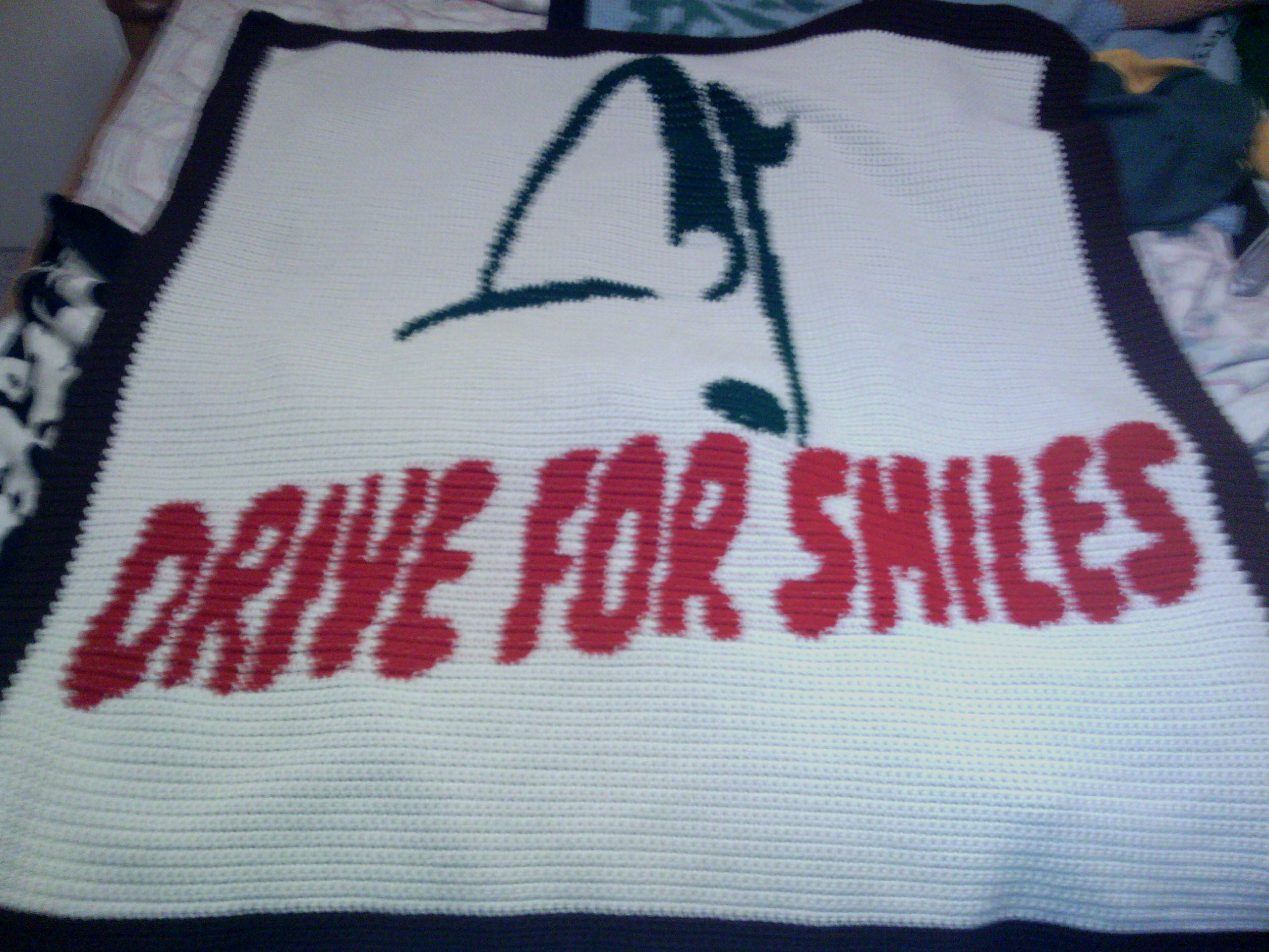 As you can see from this small selection of items, I can do just about anything. From a high school logo to ideas for blankets donated to charity auctions, characters and special creations that we design together. Over the years I have made many blankets with simple messages of love or support with custom baby blankets glorifying the birthday my most common project. Nothing says love like a home made blanket from Yarnfish Crochet. Heirloom quality, there are college kids still attached to their blanket made with love by Yarnfish Crochet. One 5 year old was so upset when his blanket was lost on a family vacation he didn’t sleep for days, crying for his blanket. So I made a new one and now his new little sister will be getting her special blanket too. I love my customers and put my heart in to every project for every customer, that’s why I keep my business small. Custom projects take time, each one I make contains a piece of my heart and are a unique a special gift that I have been blessed with the skills to make. If you would like a custom blanket please email me REQUEST A QUOTE.